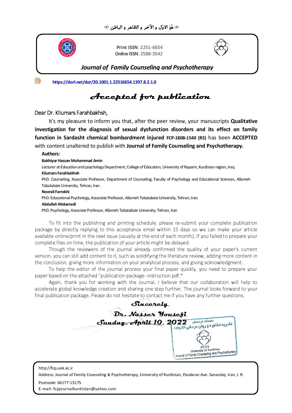 Melkari, B. (2011). Investigation of psychosocial consequences of chemical bombardment on its injured in Sardasht city by qualitative method. Master's Thesis, Faculty of Psychology and Educational Sciences, Allameh Tabataba'i University, Tehran. [
